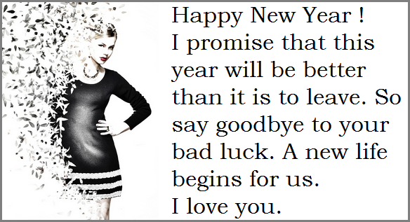 Ucapan selamt tahun baru dalam bahasa Inggris yang berusaha meyakinkan sesorang bahwa tahun ini akanlebih baik dan semoga kejelekan, kegagalan dan keburukan tidak muncul lagi di tahun ini. Ucapan selamt tahun baru memenag penuh dengan muatan moral yang baik.